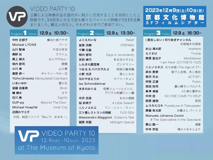 Title: The speculative in the spectacle video, 3:38 min 9+10 Dezember 2023 Videoparty 10 Kyoto Cultural Museum, Film Theatre |